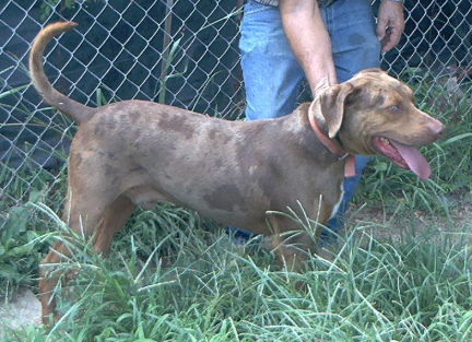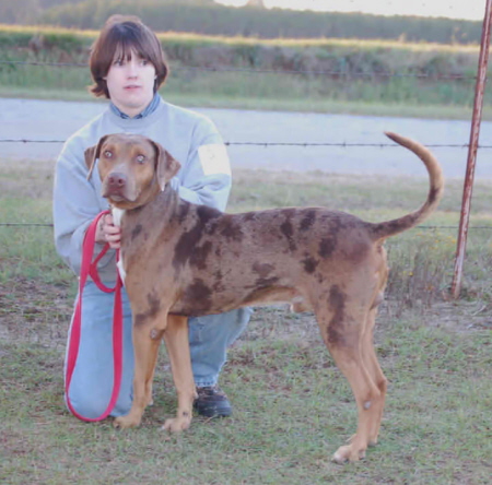 SHCH Lee's Mississippi Buck was a beautiful dog with outstanding conformation and plenty of grit. He was an aggressive bay & tree dog, and also completed his NALC conformation championship. Buck was a full brother to NALC/UKC GRCH Lee's Badeaux & NALC SHCH Lee's Roxie, and a half brother to NALC/UKC GRCH Lee's El Nino. Buck is a proven producer of excellent cow, hog, treeing, & tracking dogs, as well as numerous conformation winners (including multiple BIS/RBIS NALC ShCh Black Oak's Caddo and ACA Reserve Best in Show Female Black Oak's Madison). Buck died of kidney failure May 27, 2011. He will be sorely missed. |